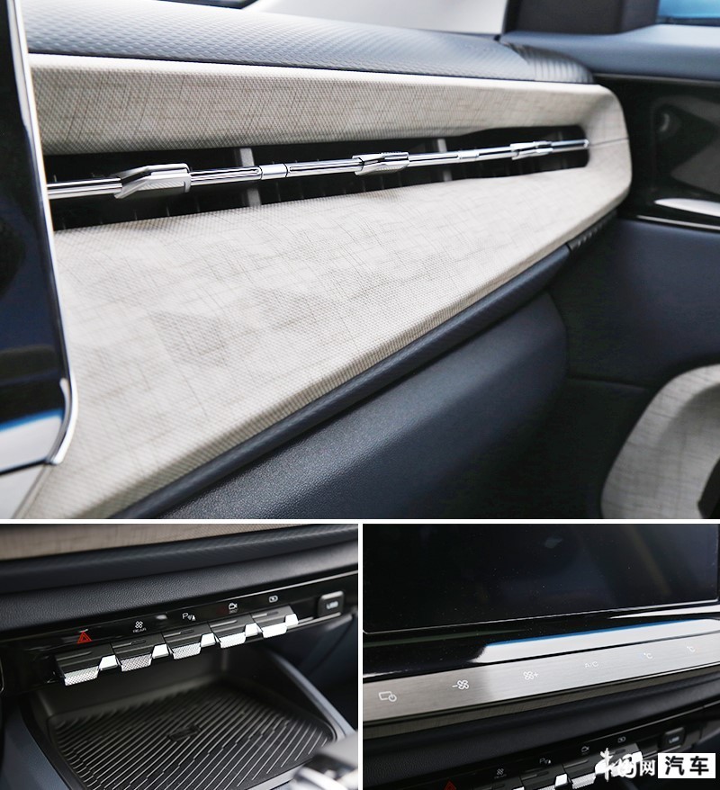 中控台副驾一侧应用了凹凸不平的带有菱形图案的饰板,触感很棒,也很有家居的风格。