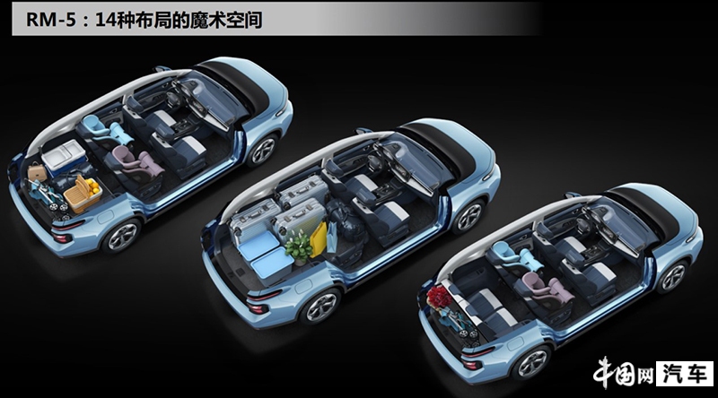 此外,RM-5提供了5座、6座和7座三种座椅布局。其中,6座布局中的中排独立座椅可以左右滑动,灵活调节,形成亲子座椅,方便大人对儿童进行看护。中排与后排座椅均可独立放倒,完成从2座到7座的多变座椅布局,满足不同细分用户的出行需求。