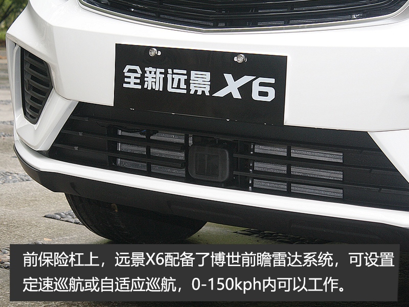 前大灯的整体造型变化不大,但内部经过了重新设计。同时,远景X6的前保险杠造型也经过了全新设计,相比现款更加运动了不少。前保险杠上,远景X6配备了博世前瞻雷达系统,可设置定速巡航或自适应巡航,0-150kph内可以工作。