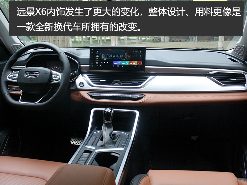 内饰方面,远景X6则发生了更大的变化,整体设计、用料更像是一款全新换代车所拥有的改变。车内棕、黑双色的设计很有高级感,辅以银色拉丝面板、软性的仪表面板,整个车内气氛都被烘托得很有质感。