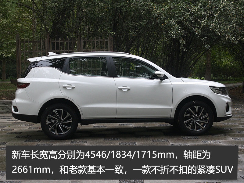 车身侧面,远景X6采用了熏黑的B柱、C柱设计,营造出了极强的悬浮式视觉效果。同时,新车配备了全新升级的18英寸多辐轮毂。尺寸方面,新车长宽高分别为4546/1834/1715mm,轴距为2661mm,和老款基本一致,属于一款不折不扣的紧凑级SUV。