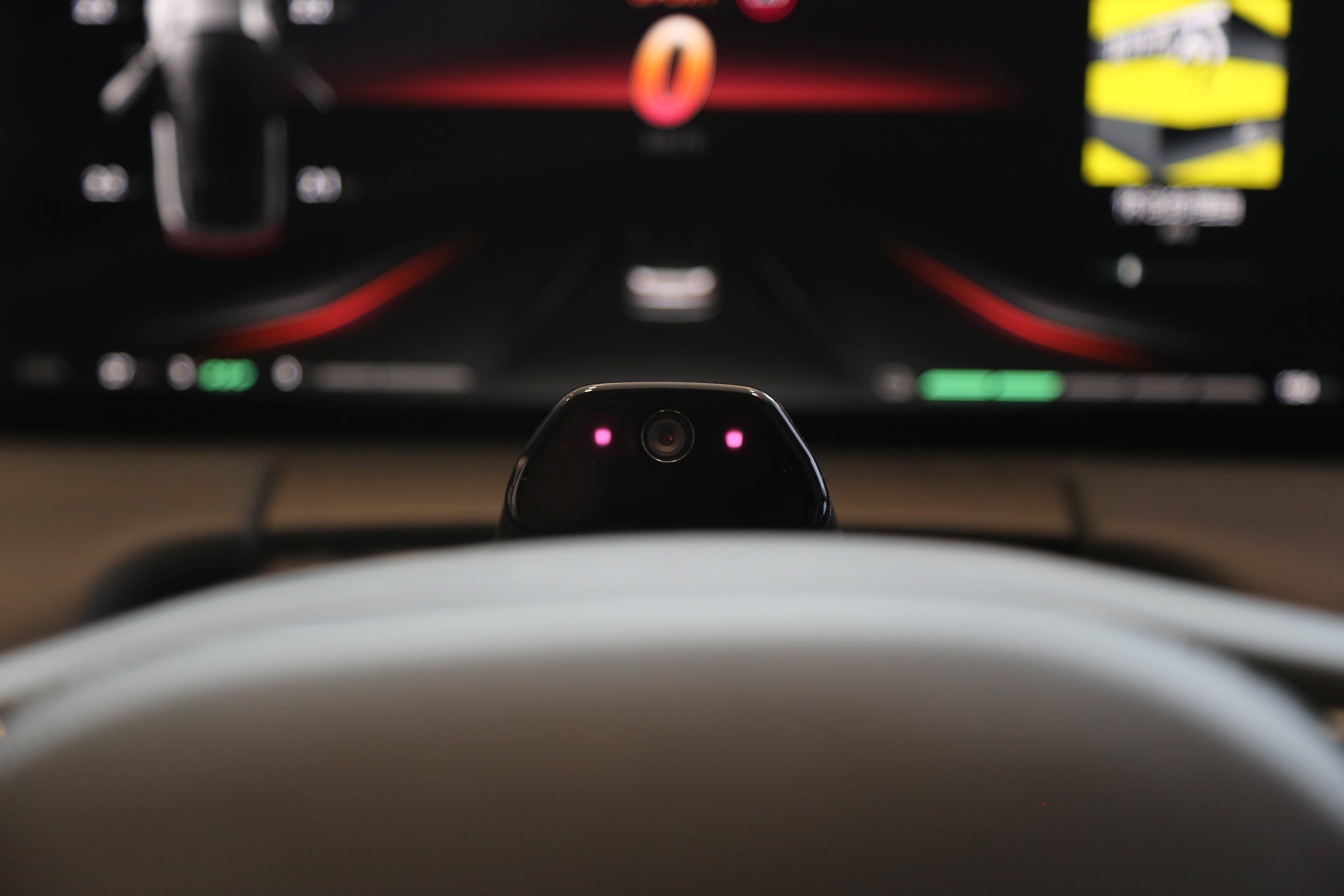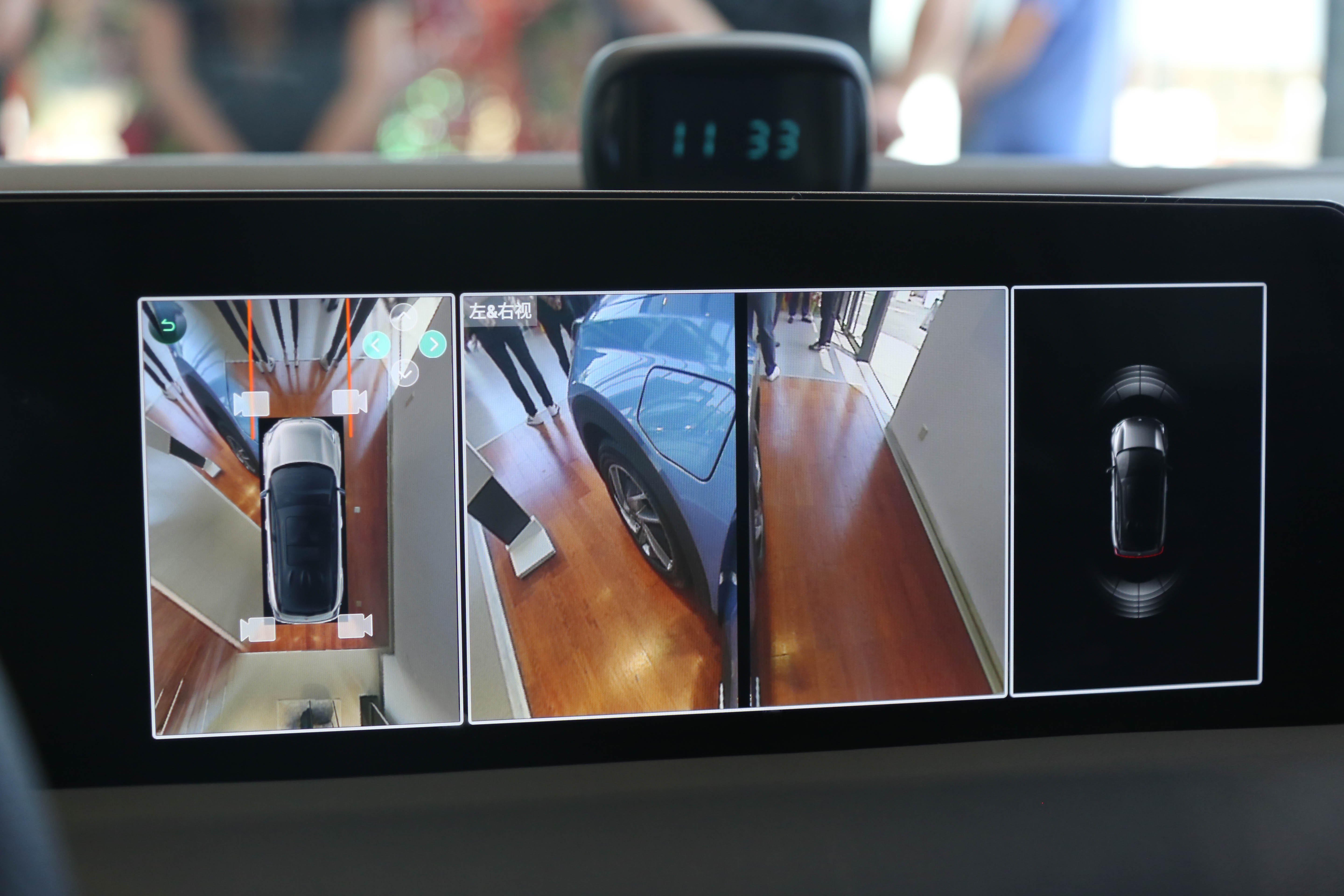 由于试驾车上均未配备,记者在展厅的展车里进行了简单的体验。首先,显示屏清晰度最多720p,到达不了1080p的清晰度,这一点不知后续是否会有改进。另外,记者把头部前后移动来观察显示屏中视野的对应显示,的确做到了有变化,但反应稍显迟滞。