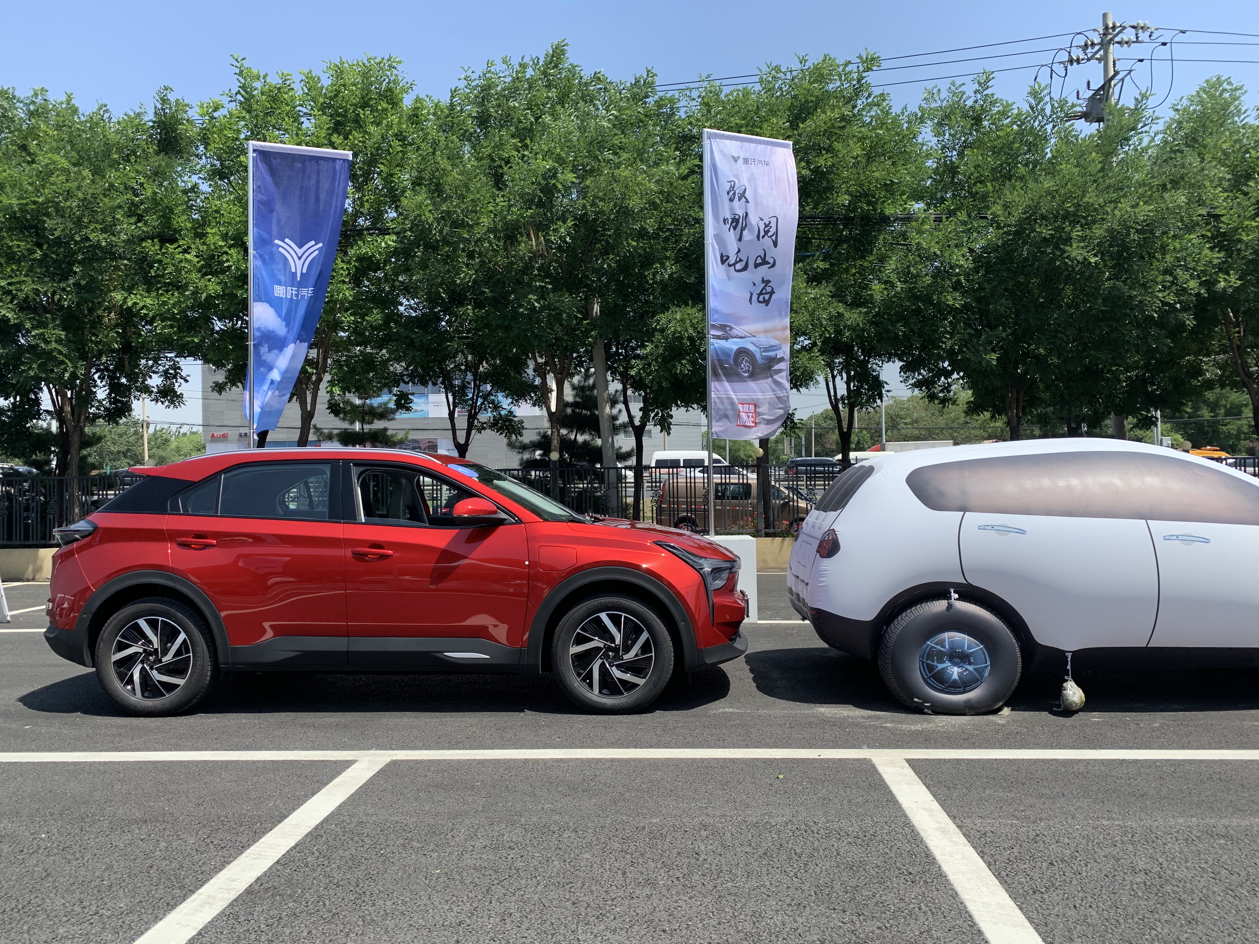 在场地中的AEB主动式紧急制动体验中,哪吒U在50km/h及以下车速可完全刹停且避免碰撞,表现很不错,给个赞。