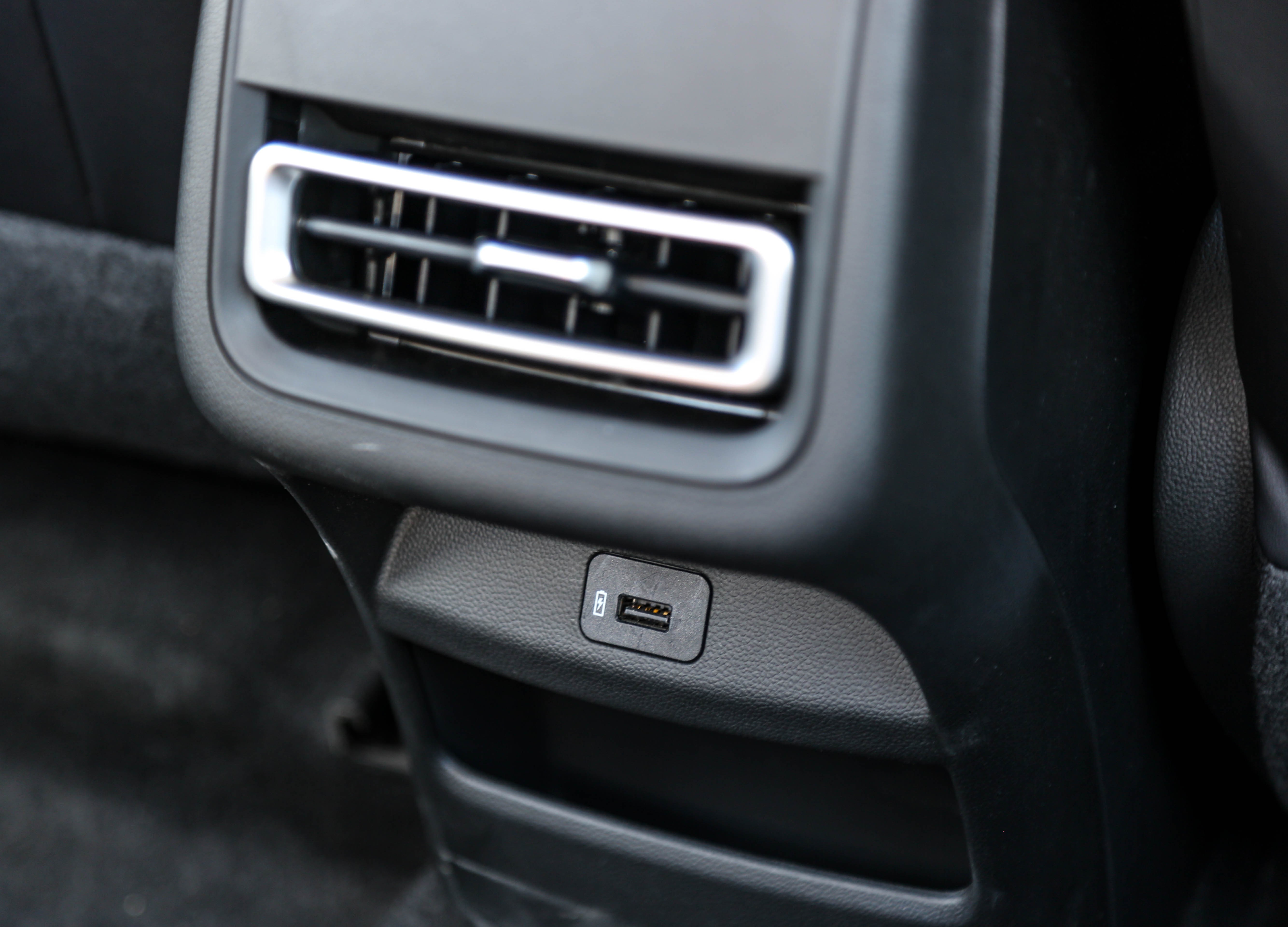 而后排的配置方面,配有一个空调出风口和一个USB接口,下方也掏空做出了一个储物格。