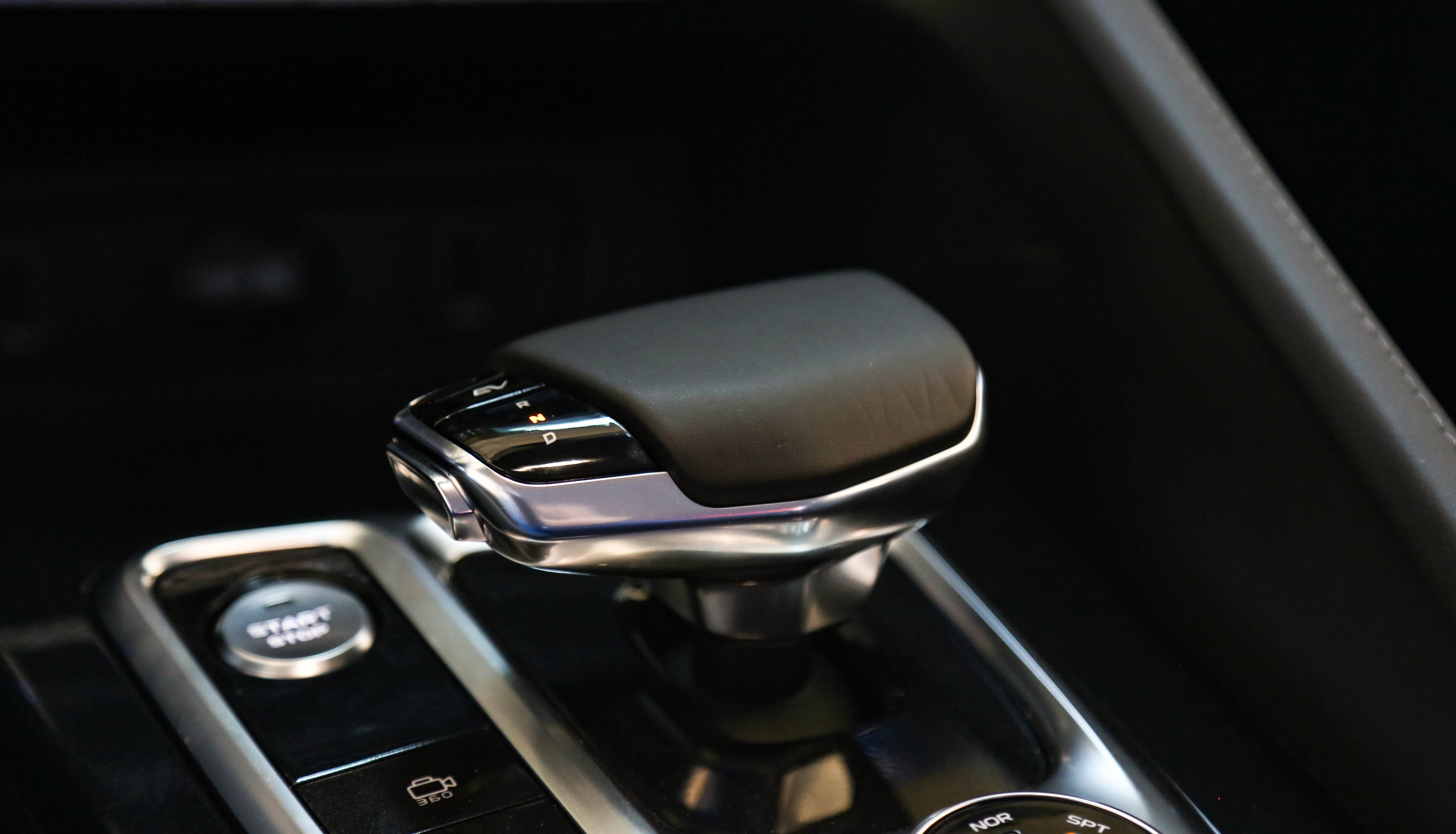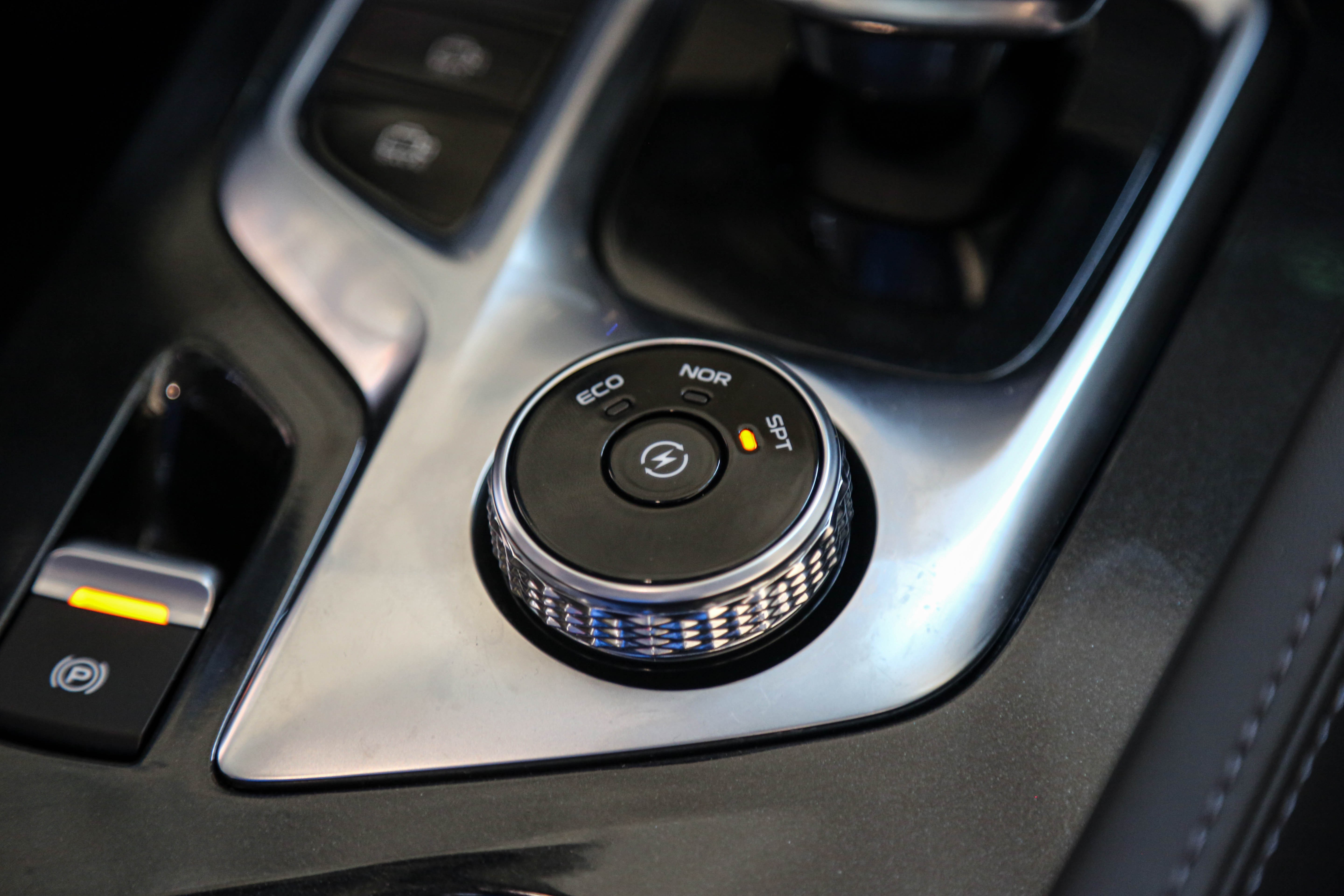 挡把后方的旋钮用来切换三种驾驶模式,中间的按钮用来切换B+和B-两种动能回收的力度。