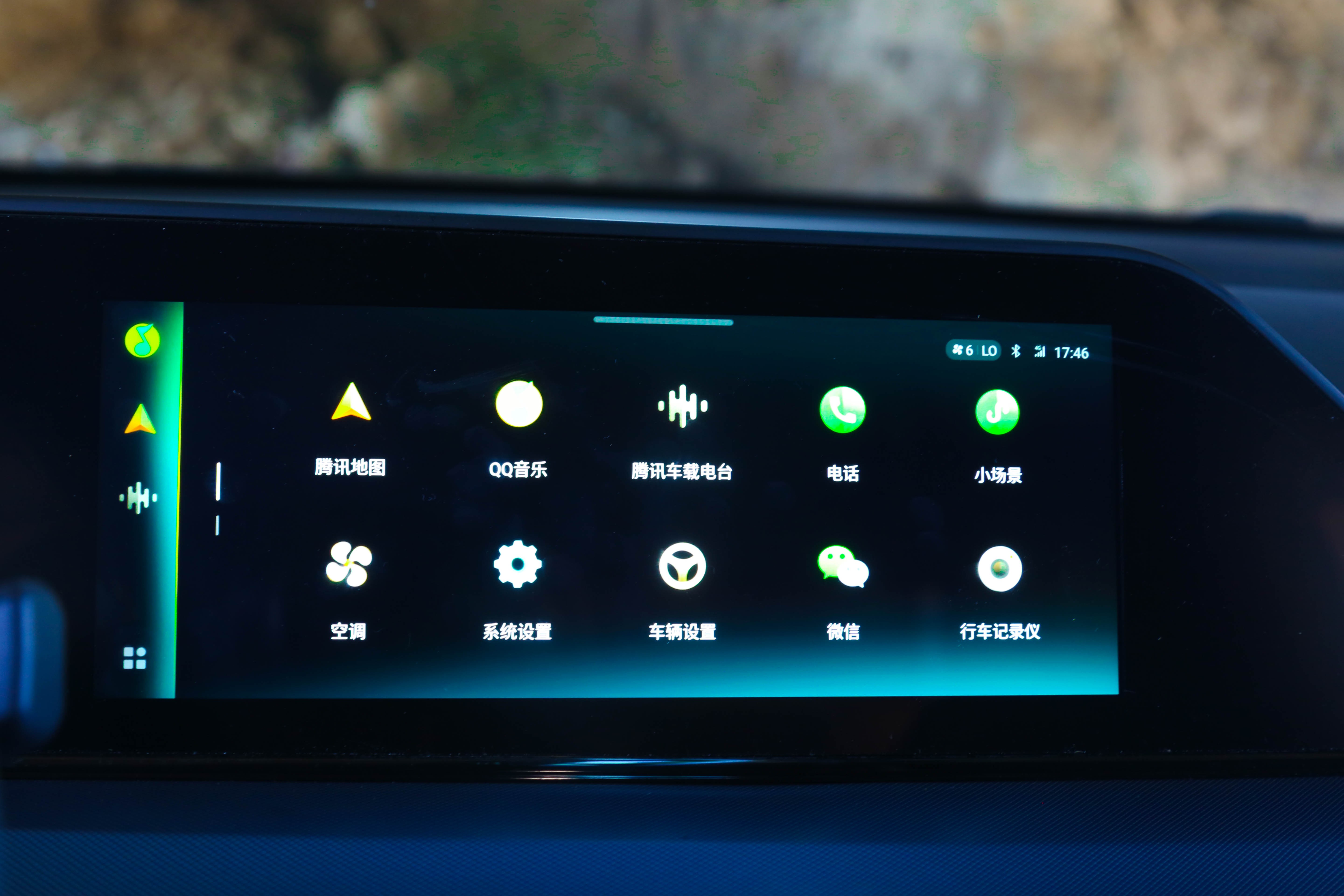 中控屏中集成了车载微信,并在方向盘上配备了快捷键,能完成微信消息的收发、播报和通话。此外还可以看到QQ音乐、腾讯地图、腾讯车载电台、行车记录仪等功能。
