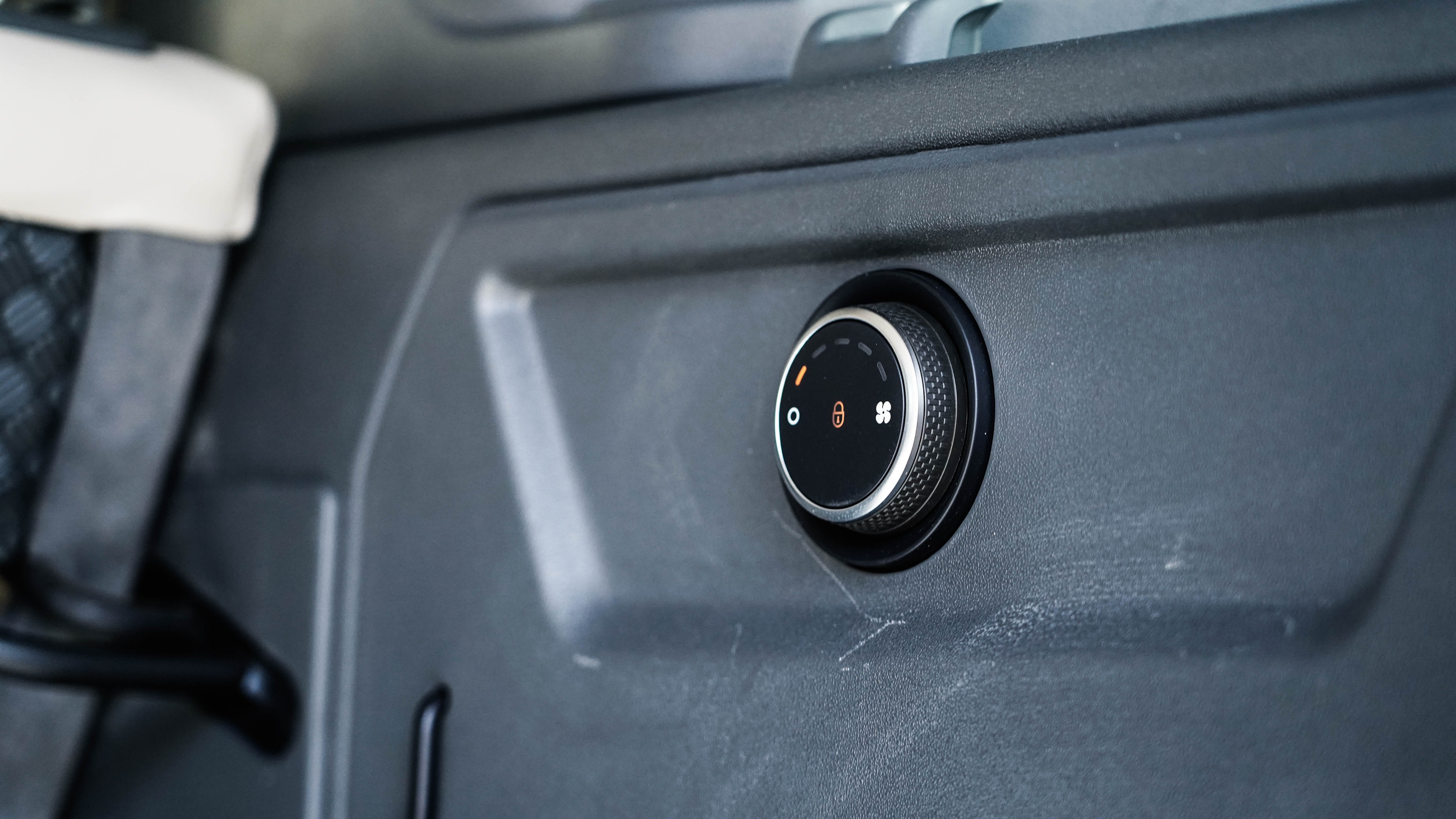 两侧还配有丰富的功能按键,如果在搬重物试觉得后悬架较高,可以通过尾厢左侧的电动按钮去降低后悬架的高度;右侧还有230V的三项插座,可以用来野外野炊等等。