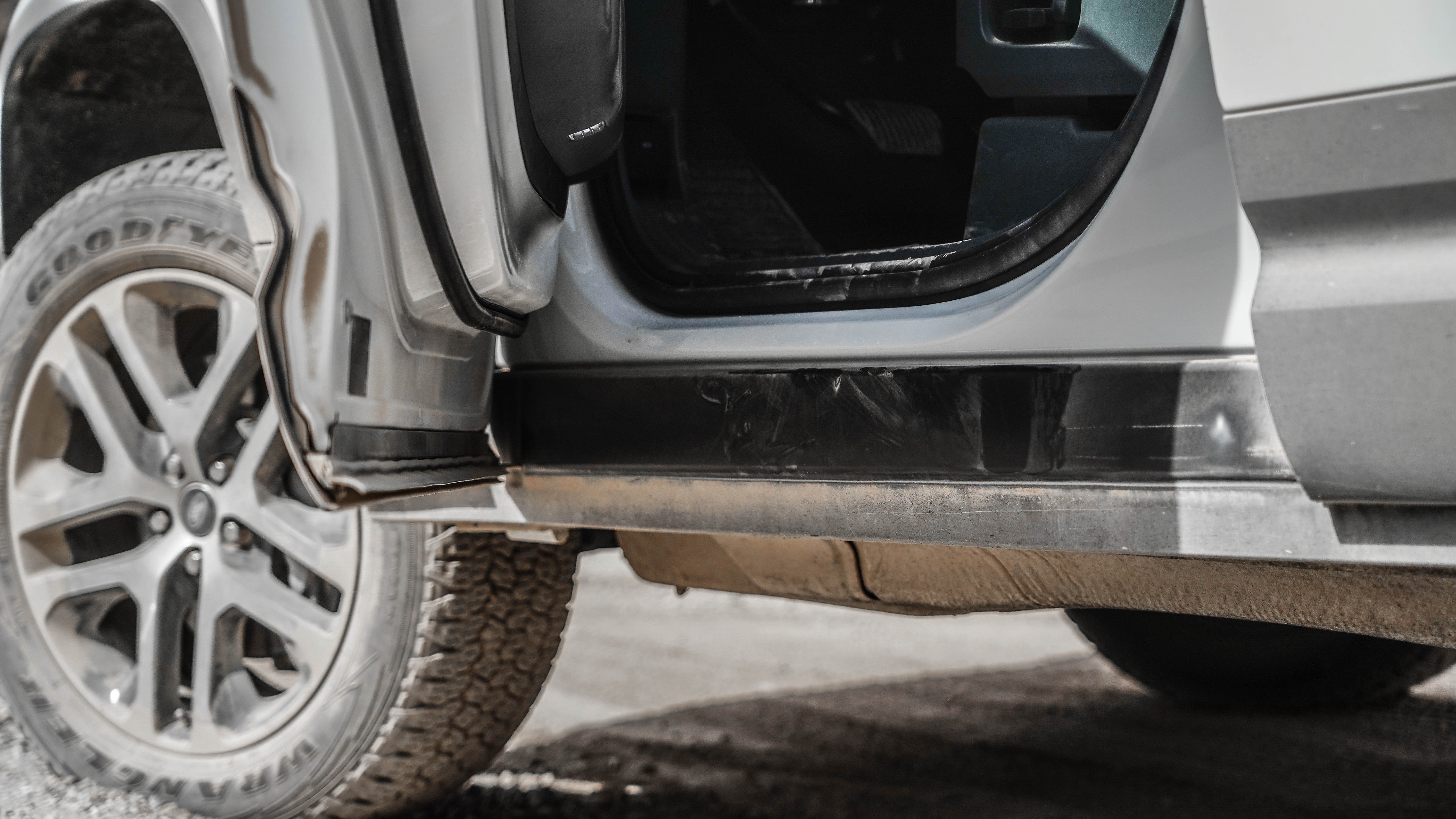 车门采用全包式设计,即便在越野环境中也可以避免上下车蹭脏裤腿;另外官方还可选装固定踏板或者电动踏板。