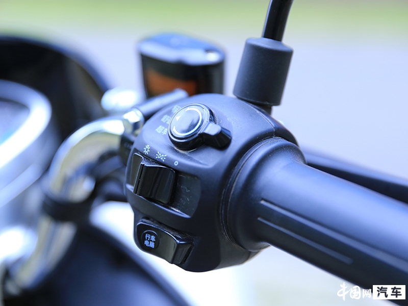两侧的多功能前把手也具有较为出色的操控性,加油或减速的反应均非常灵敏。在功能配置方面,远近灯切换、转向灯、三挡变速等均有体现。