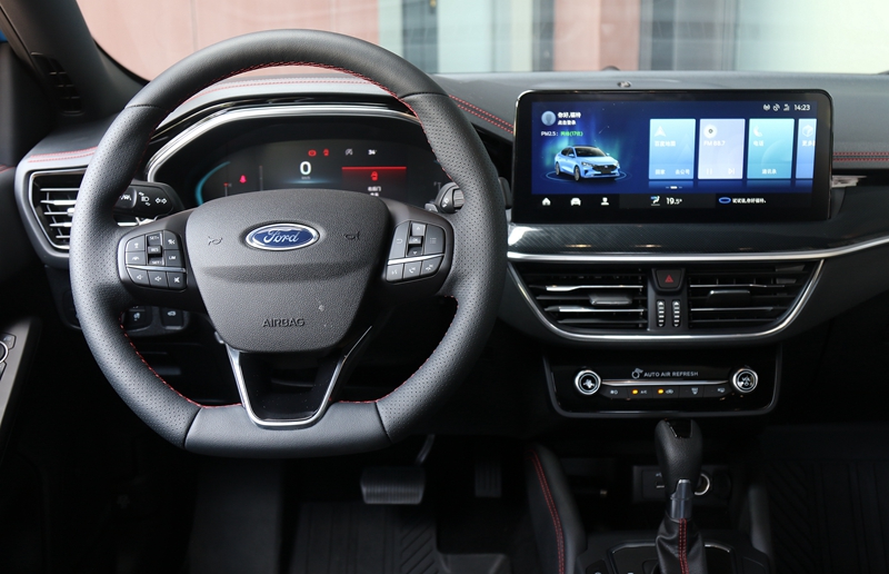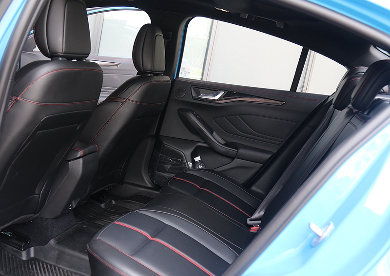 内饰方面,新福克斯尽管在用料上没有过于突出的地方,但营造出来的运动感还是非常到位。包括黑色内饰、平底方向盘、碳纤维风格饰条、带ST-Line刺绣Logo的座椅、还有车内随处可见的红色缝线,运动味进一步油然而生。