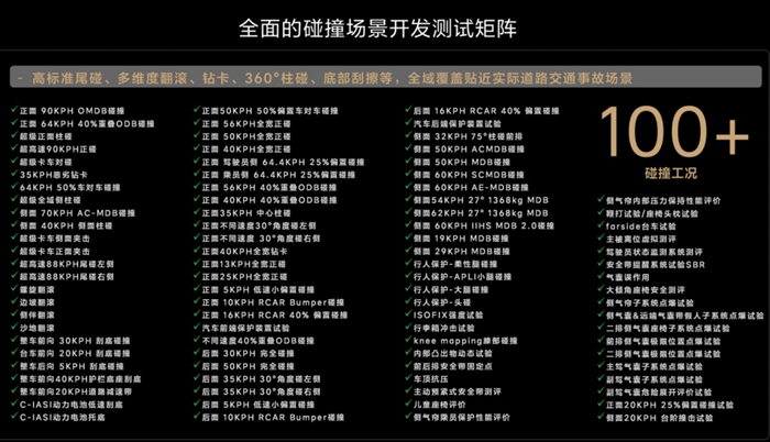 理想汽车的安全实力,绝非停留在碰撞测试的成绩单上,而是体现在对真实用户场景的极致覆盖。在行业平均仅50余项公开测试场景的背景下,理想汽车建立了超过100项整车碰撞测试的企业标准,数量是行业平均水平的两倍以上。更关键的是,这些测试不仅“数量多”,更“维度全”。