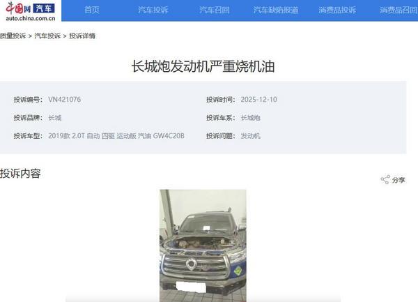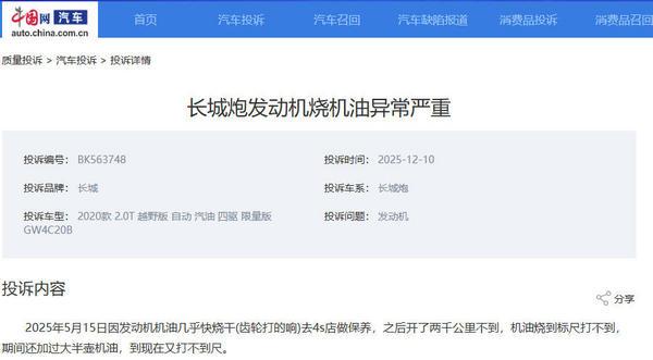 在实践中,如何将法规条款与实际问题的解决有效衔接,常常需要具体而细致的沟通。近期,在中国网汽车质量投诉平台上,就记录了一起通过平台沟通促成多方协商、推动问题解决的案例:2024年12月,多位长城炮车主反馈其车辆在行驶数万公里后出现机油消耗异常的情况。