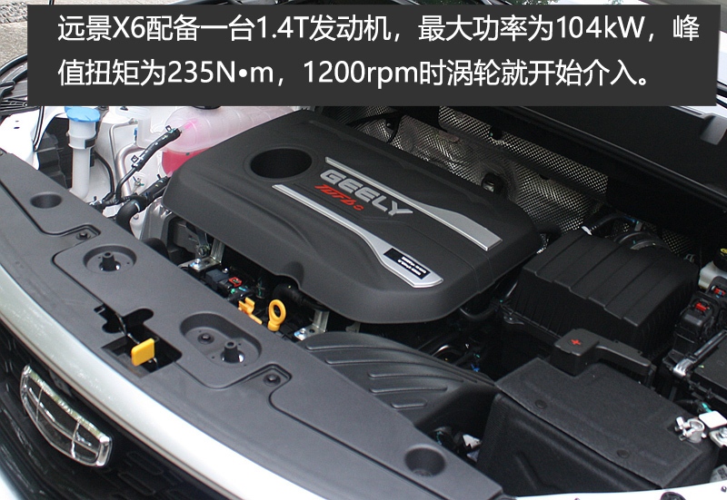 动力方面,远景X6配备一台1.4T发动机,最大功率为104kW,峰值扭矩为235N•m,1200rpm时涡轮就开始介入。传动系统,与之匹配的是可模拟8速的CVT变速箱。手动挡车型则匹配的是来自爱信的6MT变速箱。