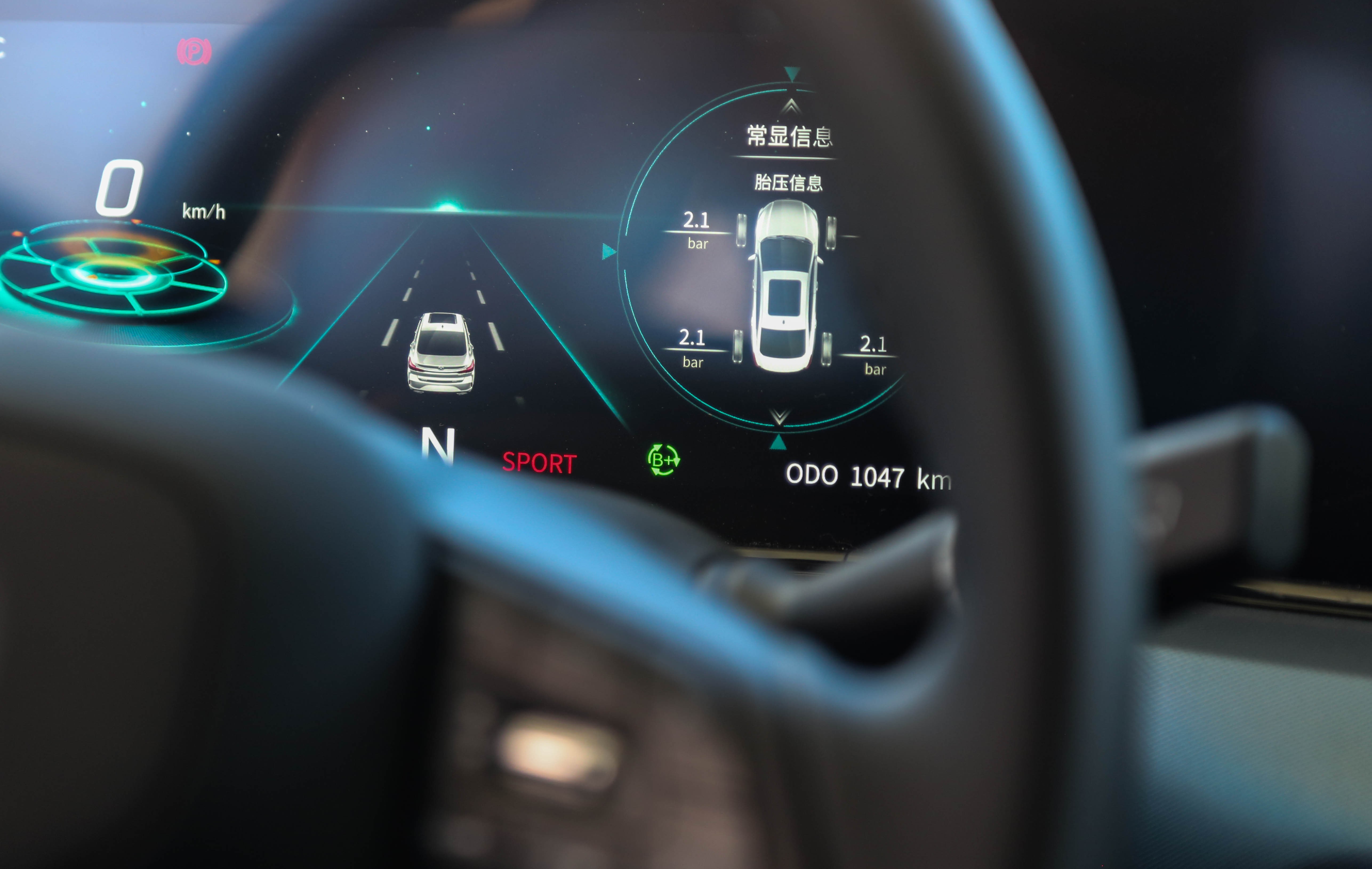 在ECO模式下会开启单踏板模式,可以仅用加速踏板来控制车速,如果还是在“B+”能量回收状态下,可以感受到明显的拖拽感,个人感觉ECO+“B-”这个组合更适合在停停走走的城市路况中使用。NORMAL和SPORT模式下的动力输出也是非常舒服的,相对来说SPORT的输出会更直接一些,推背感是更强的,但也不是特别突兀的那种。另可根据个人的接受程度选择B+还是B-,但能量回收力度比起ECO模式会减弱很多。