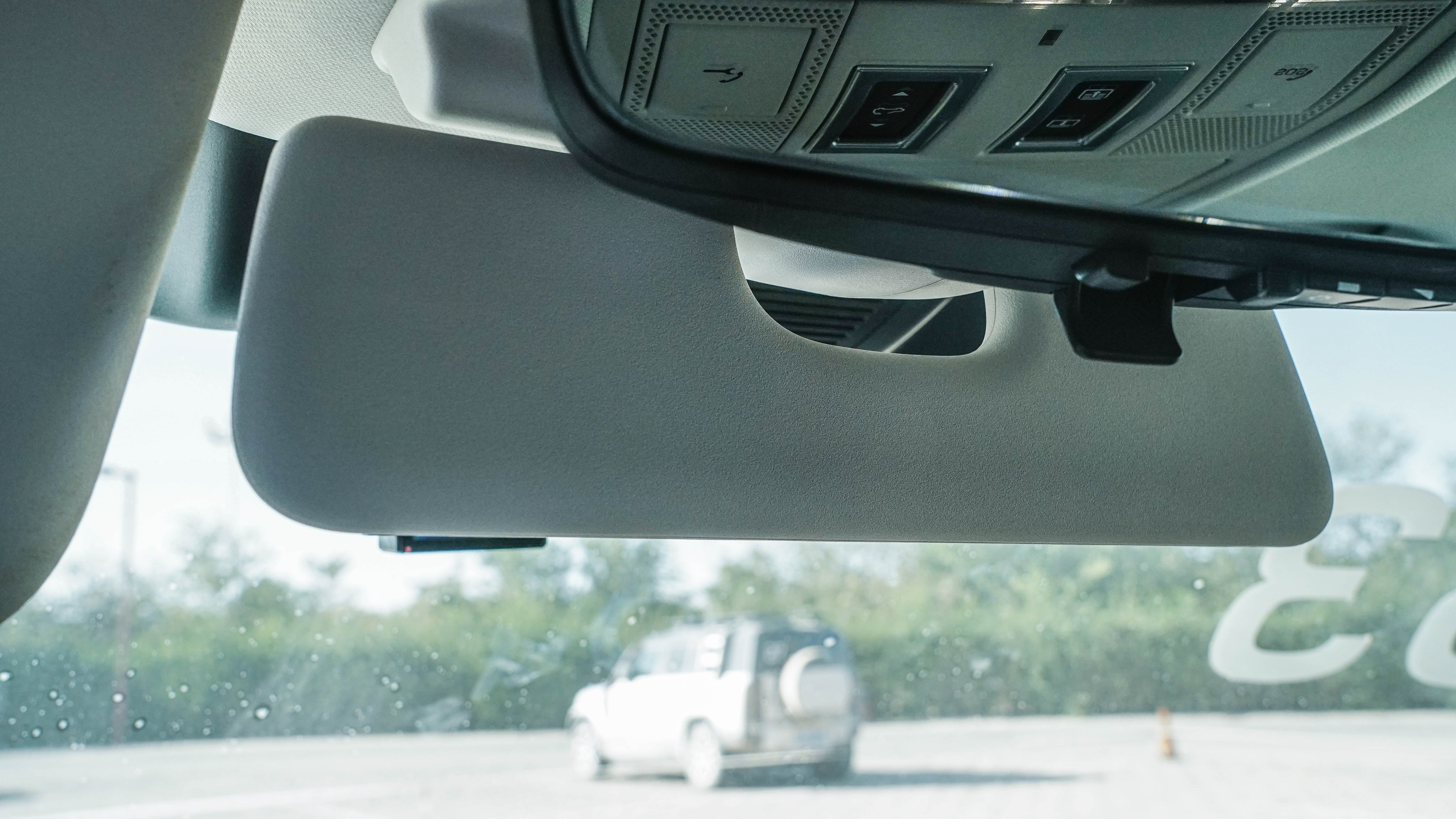 后视镜后侧也配有遮阳板,很有人性化的设计。