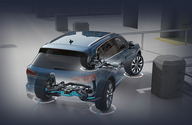 空气悬挂谁都可以有,但功能的多少和调校的效果也有好坏之分。大众途锐的这套主动式空气悬挂可以升高70毫米、下降40毫米,是可调范围很大的一组空气悬挂。升高到最高时,途锐拥有258毫米的最小离地间隙,这相当于普通轿车两倍,足以应对很多复杂路况。